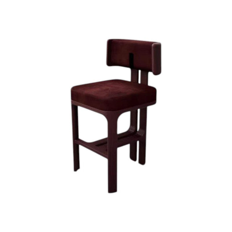 Барный стул AVERAGE by Romatti — образец современного дизайна с лаконичными формами. Выполнен в минималистичном стиле: сочетает прямые линии и плавные изгибы, имеет массивные подлокотники и спинку с оригинальным вырезом. Обивка выполнена из бархатистой ткани насыщенного тёмного оттенка, что придаёт изделию элегантность и глубину.