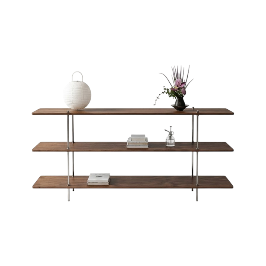 В ДНК этой модели заложен идеальный баланс между строгим индустриальным шиком и теплым, живым уютом натурального дерева. Архитектурный ритм горизонтальных полок и тонких вертикальных опор создает выверенную геометрию, которая притягивает взгляд и вносит в помещение чувство гармонии. Благодаря благородной текстуре материалов и лаконичному силуэту, консоль становится универсальным решением, способным одинаково эффектно дополнить как строгий минимализм, так и эклектичный лофт.