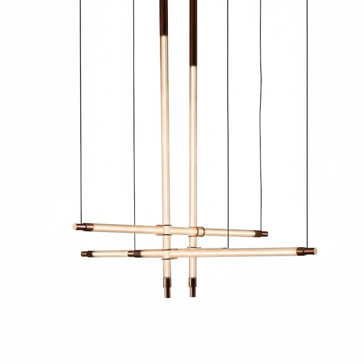Люстра AFELICE by Romatti — воплощение современного минимализма с лаконичной геометрией. Конструкция состоит из нескольких пересекающихся цилиндрических элементов, подвешенных на тонких тросах. Чистые линии и сдержанная цветовая гамма создают выразительный, но не перегруженный образ, который легко впишется в любой современный интерьер. Дизайн одновременно функционален и эстетичен: простота форм подчёркивает утончённость изделия, а продуманная композиция обеспечивает равномерное распределение света.