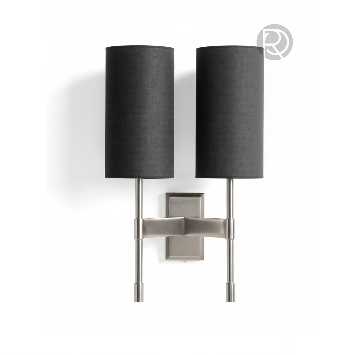 Два высоких цилиндрических плафона из плотной черной ткани создают четкий контраст со светлой стеной и металлическим основанием. Черный цвет обеспечивает направленный, камерный свет, который идеально подходит для создания уютной атмосферы.
