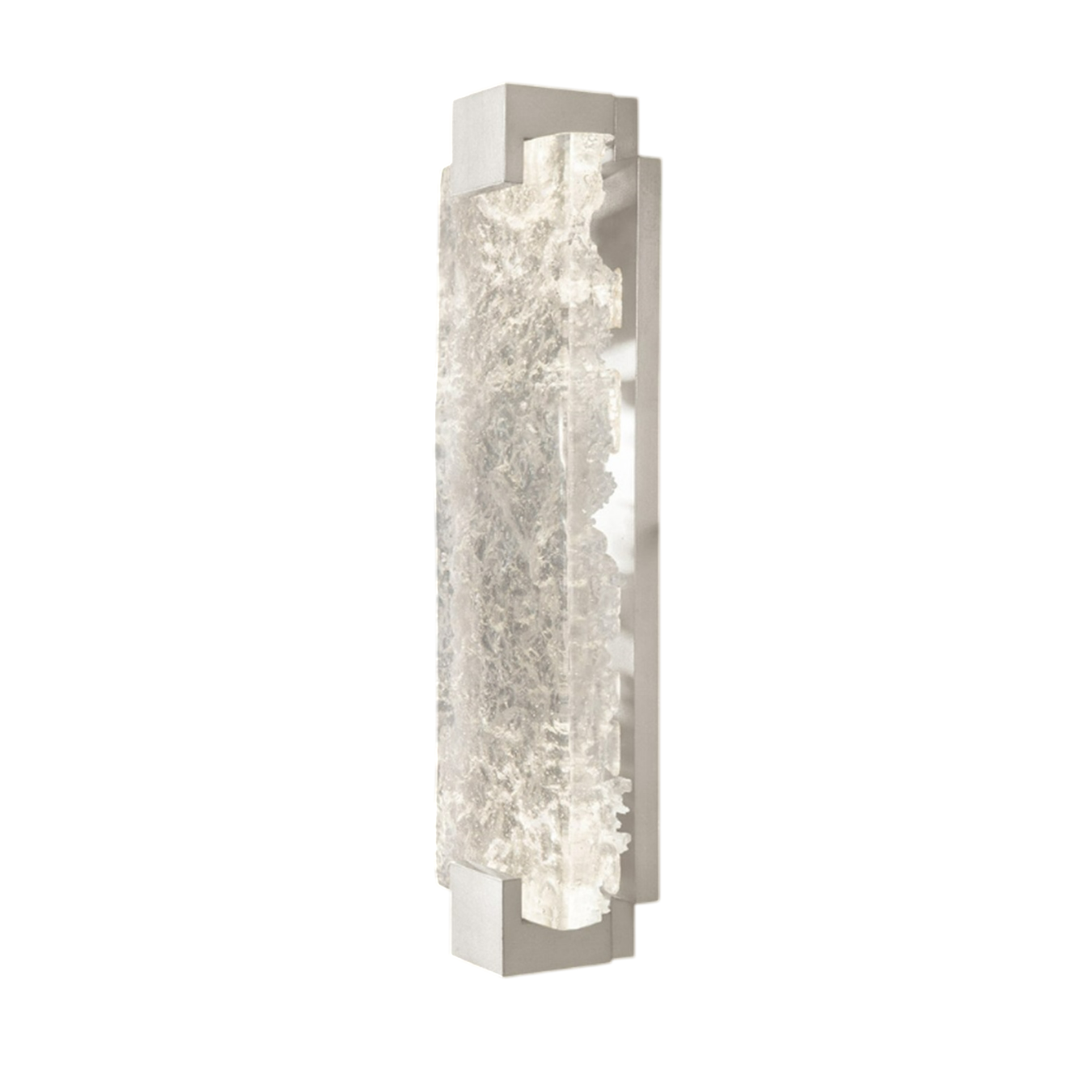Настенный светильник (бра) LERRA by Romatti — изысканное сочетание металла и хрусталя, воплощающее современный стиль с элементами роскоши. Его лаконичная прямоугольная форма привлекает внимание: металлическая рама с матовой отделкой обрамляет центральный элемент из фактурного хрусталя, создавая эффектный контраст между строгостью линий и природной игрой света в текстуре материала.