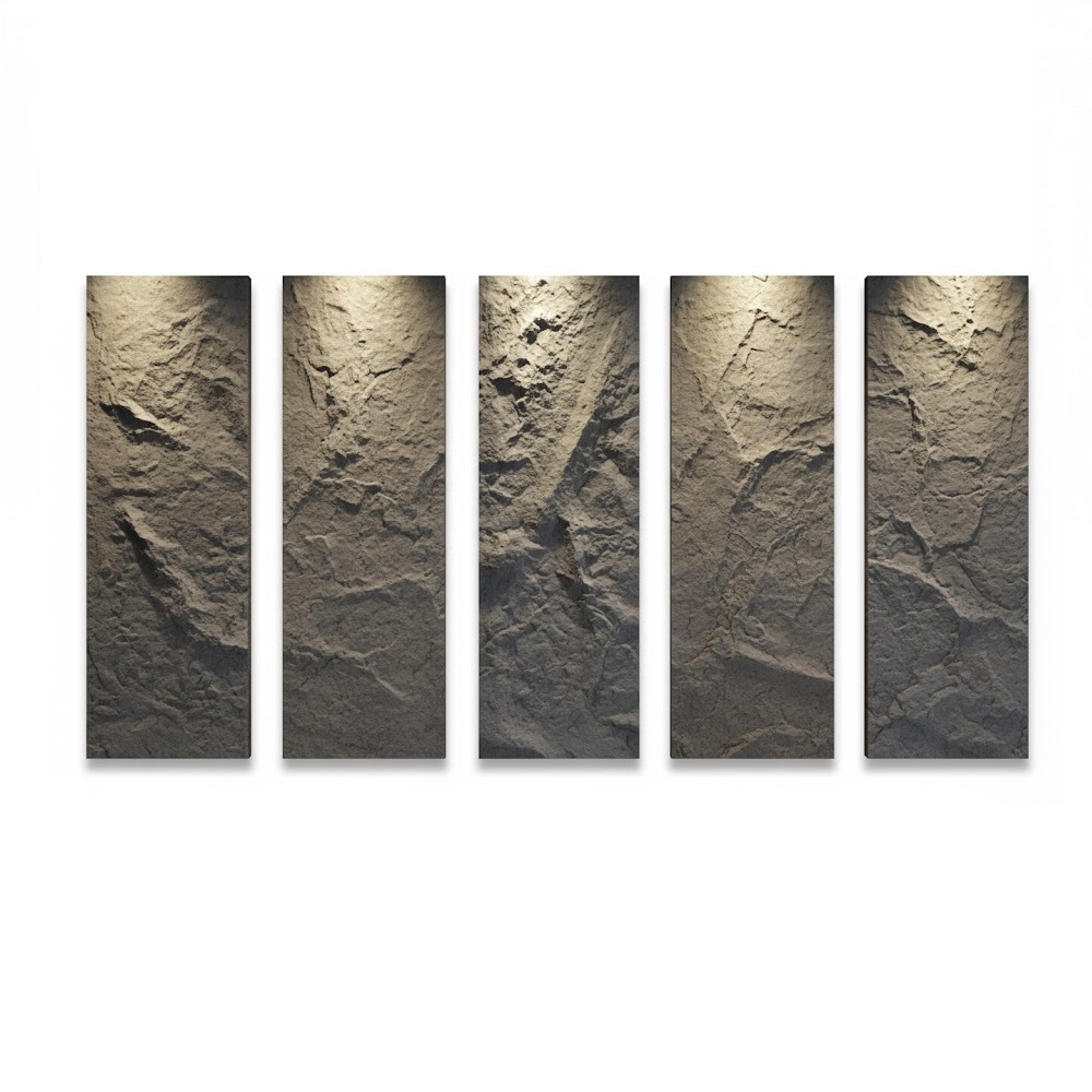 Потрясающий 3D-Эффект: Панели из вспененного полиуретана в точности имитируют натуральную текстуру камня (как на фото) или имеют стильные рельефные узоры. Они придают стенам глубину, объем и дорогой, естественный вид, который сложно отличить от оригинала.