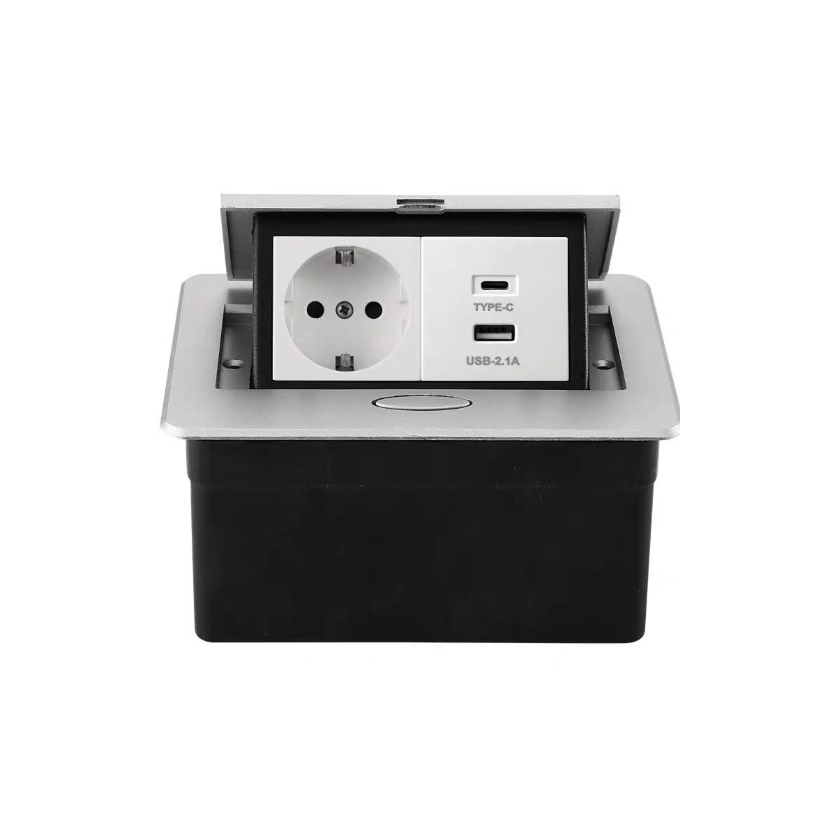 Розетка ENERGLOW — это современное встраиваемое решение для организации электропитания в доме или офисе. Компактная конструкция позволяет легко интегрировать устройство в столешницу или стену, сохраняя эстетику интерьера и освобождая пространство. Выдвижной механизм обеспечивает удобный доступ к разъёмам только при необходимости, а в сложенном виде розетка практически незаметна. Модель сочетает в себе классическую электрическую розетку (16 А, 250 В) с современными USB-портами (USB-A и Type-C), что позволяет одновременно подключать как крупную бытовую технику, так и мобильные устройства.