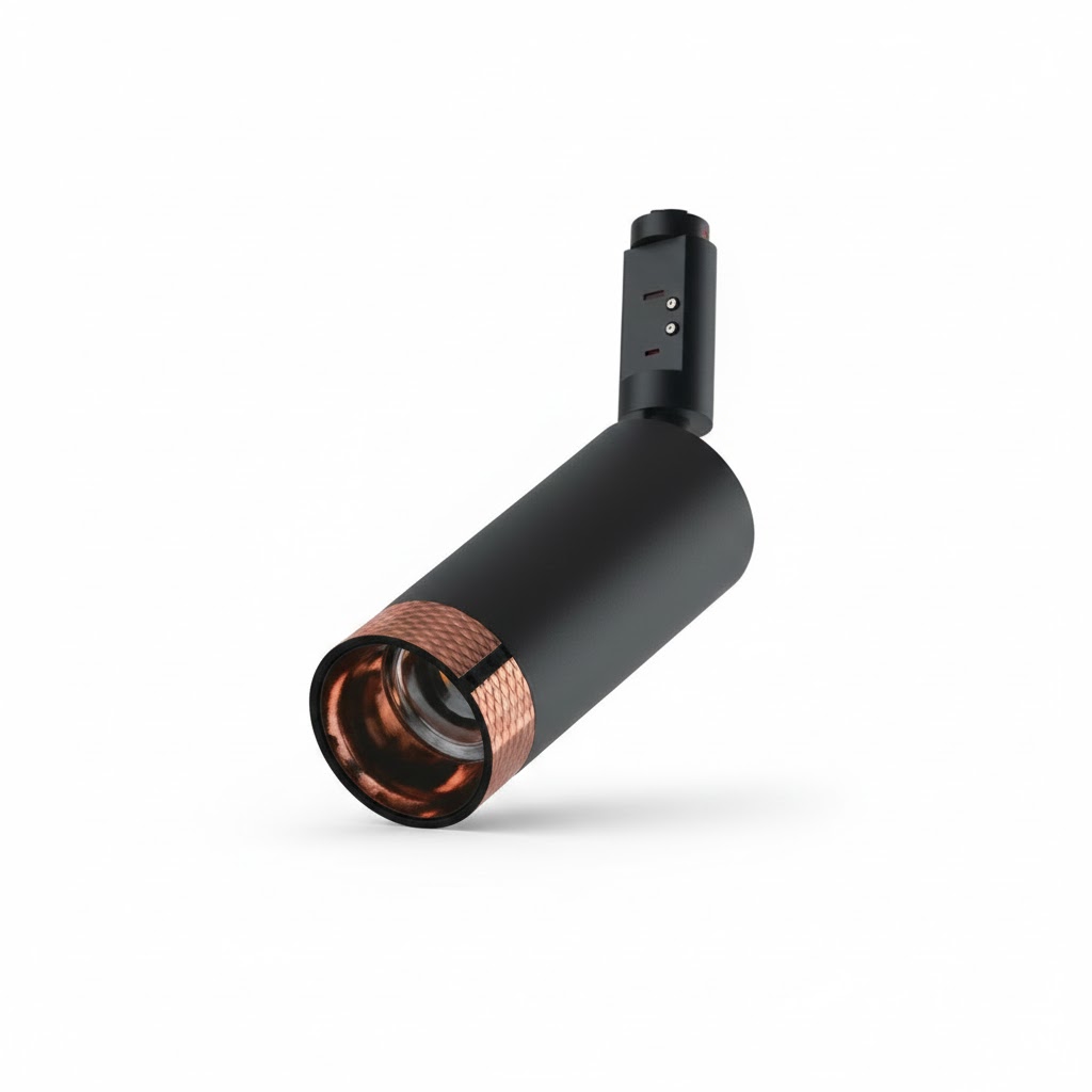 Спот MOBIUS-05 от Romatti — это современное трековое осветительное решение, сочетающее лаконичный дизайн и функциональность. Элегантная цилиндрическая форма с контрастным сочетанием матового чёрного корпуса и декоративной медной вставки придаёт светильнику стильный и технологичный вид, который органично впишется в любой современный интерьер — от минимализма до лофта.