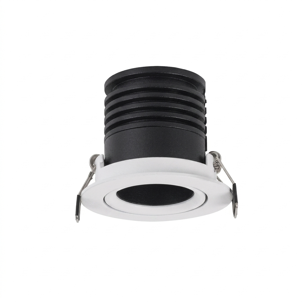 С технической точки зрения модель выделяется продуманной системой теплоотвода: массивный ребристый радиатор в верхней части корпуса эффективно отводит тепло от светодиода, что значительно продлевает срок службы устройства. Прочные пружинные зажимы гарантируют надежную фиксацию в монтажном отверстии, а качественные материалы корпуса обеспечивают долговечность и сохранение эстетичного вида. Этот светильник станет отличным выбором для тех, кто ценит технологичность и хочет создать в интерьере выразительную игру света и тени без громоздких осветительных приборов.