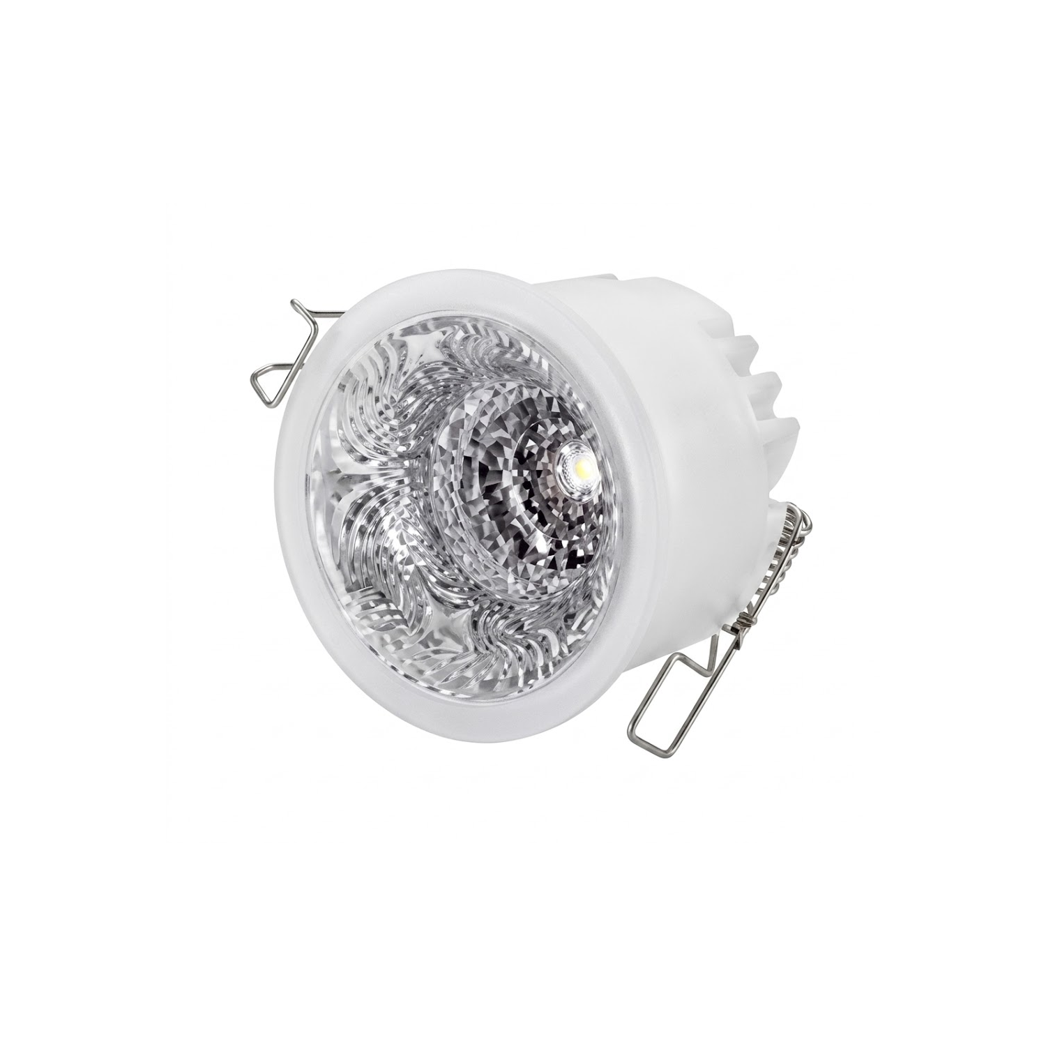 С технической точки зрения модель выделяется продуманной системой теплоотвода: массивный ребристый радиатор в верхней части корпуса эффективно отводит тепло от светодиода, что значительно продлевает срок службы устройства. Прочные пружинные зажимы гарантируют надежную фиксацию в монтажном отверстии, а качественные материалы корпуса обеспечивают долговечность и сохранение эстетичного вида. Этот светильник станет отличным выбором для тех, кто ценит технологичность и хочет создать в интерьере выразительную игру света и тени без громоздких осветительных приборов.