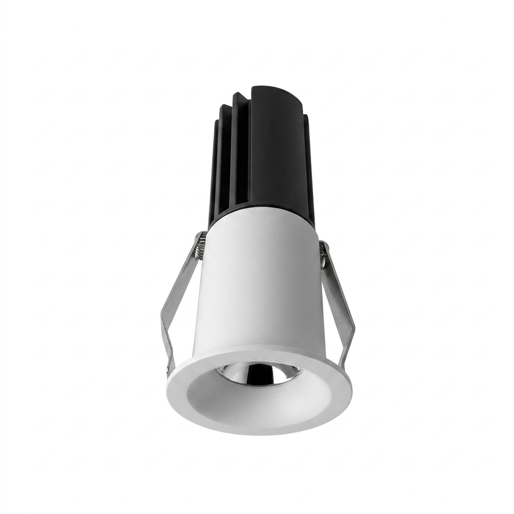 С технической точки зрения модель выделяется продуманной системой теплоотвода: массивный ребристый радиатор в верхней части корпуса эффективно отводит тепло от светодиода, что значительно продлевает срок службы устройства. Прочные пружинные зажимы гарантируют надежную фиксацию в монтажном отверстии, а качественные материалы корпуса обеспечивают долговечность и сохранение эстетичного вида. Этот светильник станет отличным выбором для тех, кто ценит технологичность и хочет создать в интерьере выразительную игру света и тени без громоздких осветительных приборов.