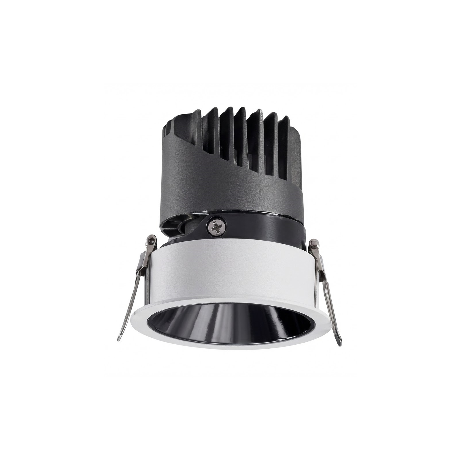 С технической точки зрения модель выделяется продуманной системой теплоотвода: массивный ребристый радиатор в верхней части корпуса эффективно отводит тепло от светодиода, что значительно продлевает срок службы устройства. Прочные пружинные зажимы гарантируют надежную фиксацию в монтажном отверстии, а качественные материалы корпуса обеспечивают долговечность и сохранение эстетичного вида. Этот светильник станет отличным выбором для тех, кто ценит технологичность и хочет создать в интерьере выразительную игру света и тени без громоздких осветительных приборов.